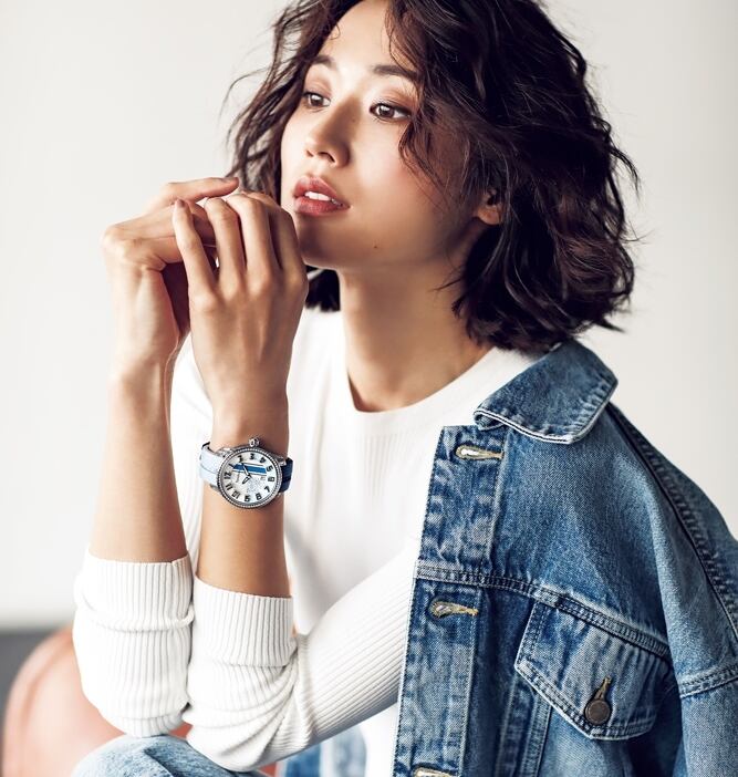 41㎜のミディアムサイズですが、カラーリングとデザインされた様々なパターン(柄)によって、腕元に印象を与えてくれる存在です。ケースの周りにはクリスタルストーンがデザインされ、キラキラと輝くアクセントに。
