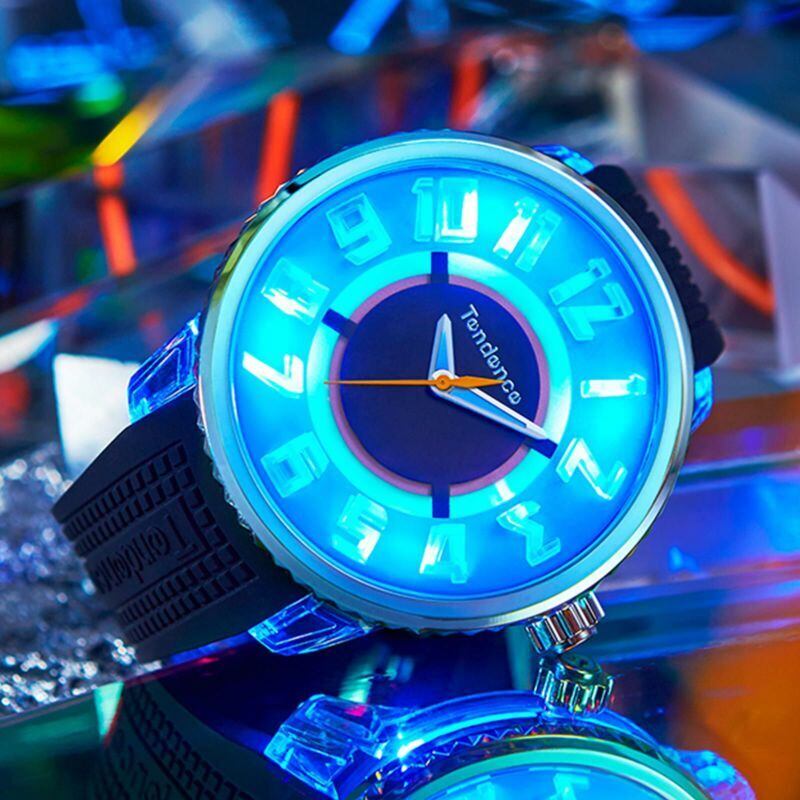 3時位置の「 リューズ」ボタンをワンプッシュすることで、内蔵されているLEDライトが光り輝き、さまざまな表情を楽しめます。