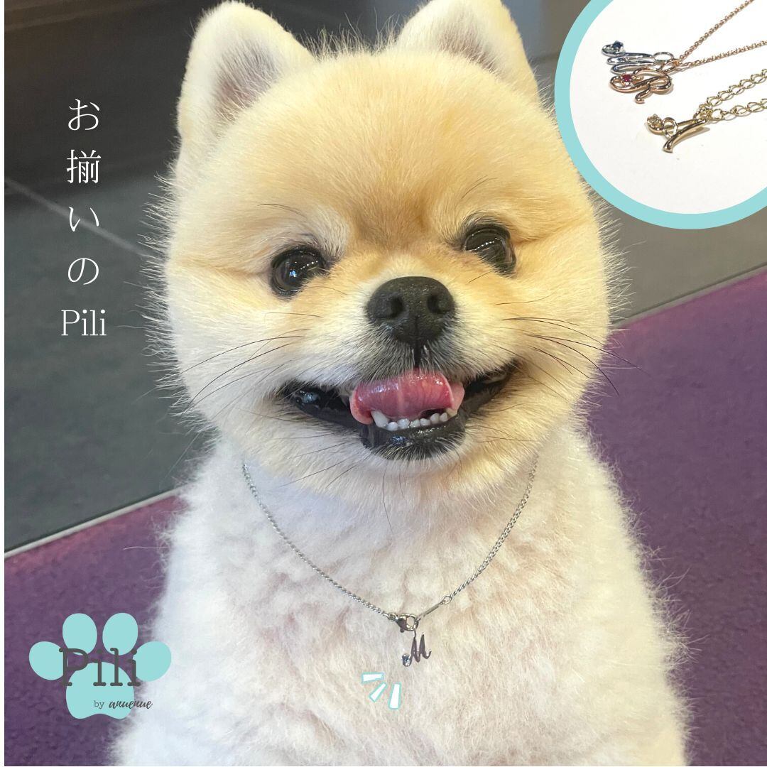 ペット用★K10+ステンレスチェーン★愛犬とペアで着けるイニシャルネックレス【anuenue 〜Pili〜】