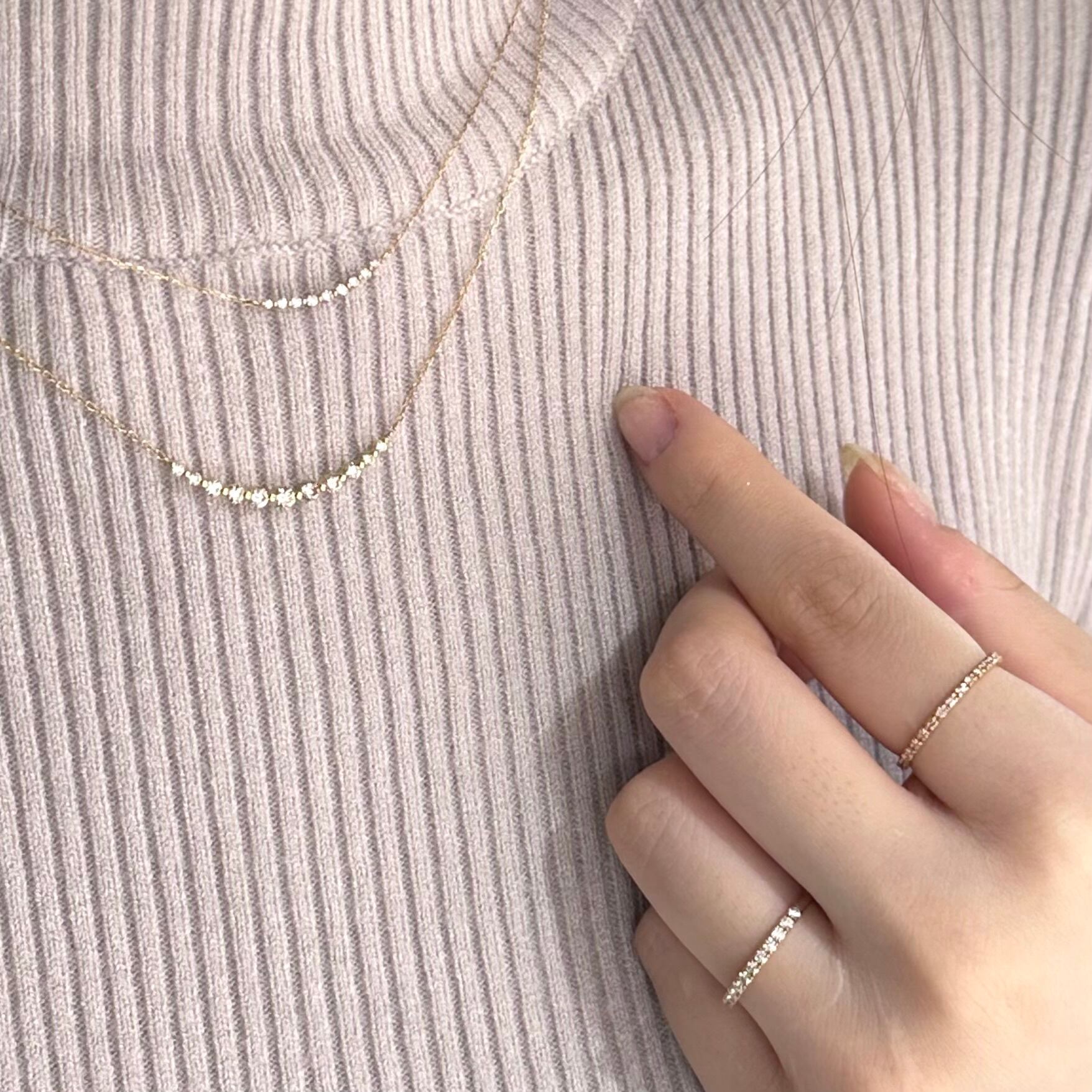 ハーフエタニティでダイヤモンドが11石セッティングされており、手元を華やかに魅せてくれます。
