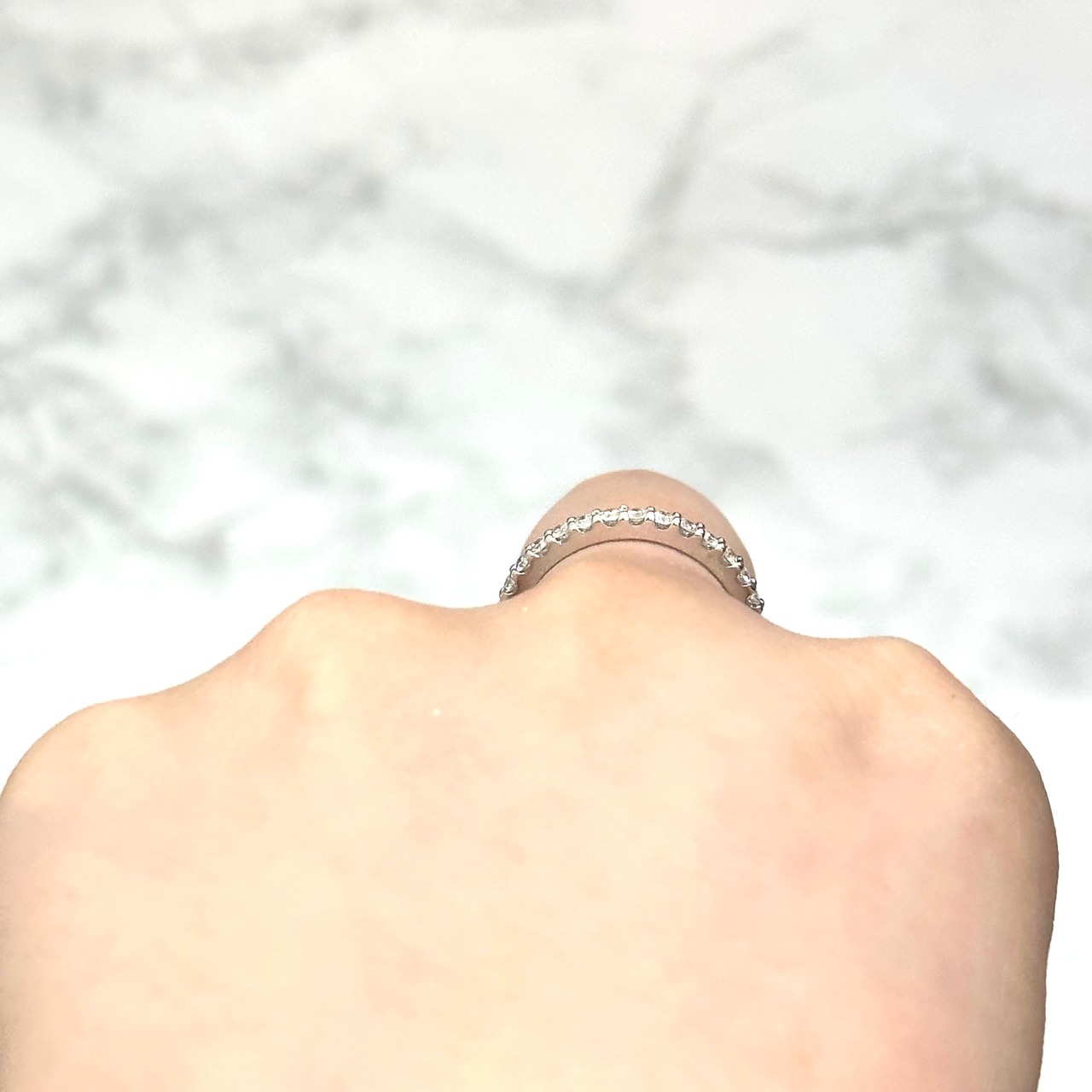 ハーフエタニティリングで手元を華やかに魅せてくれます。